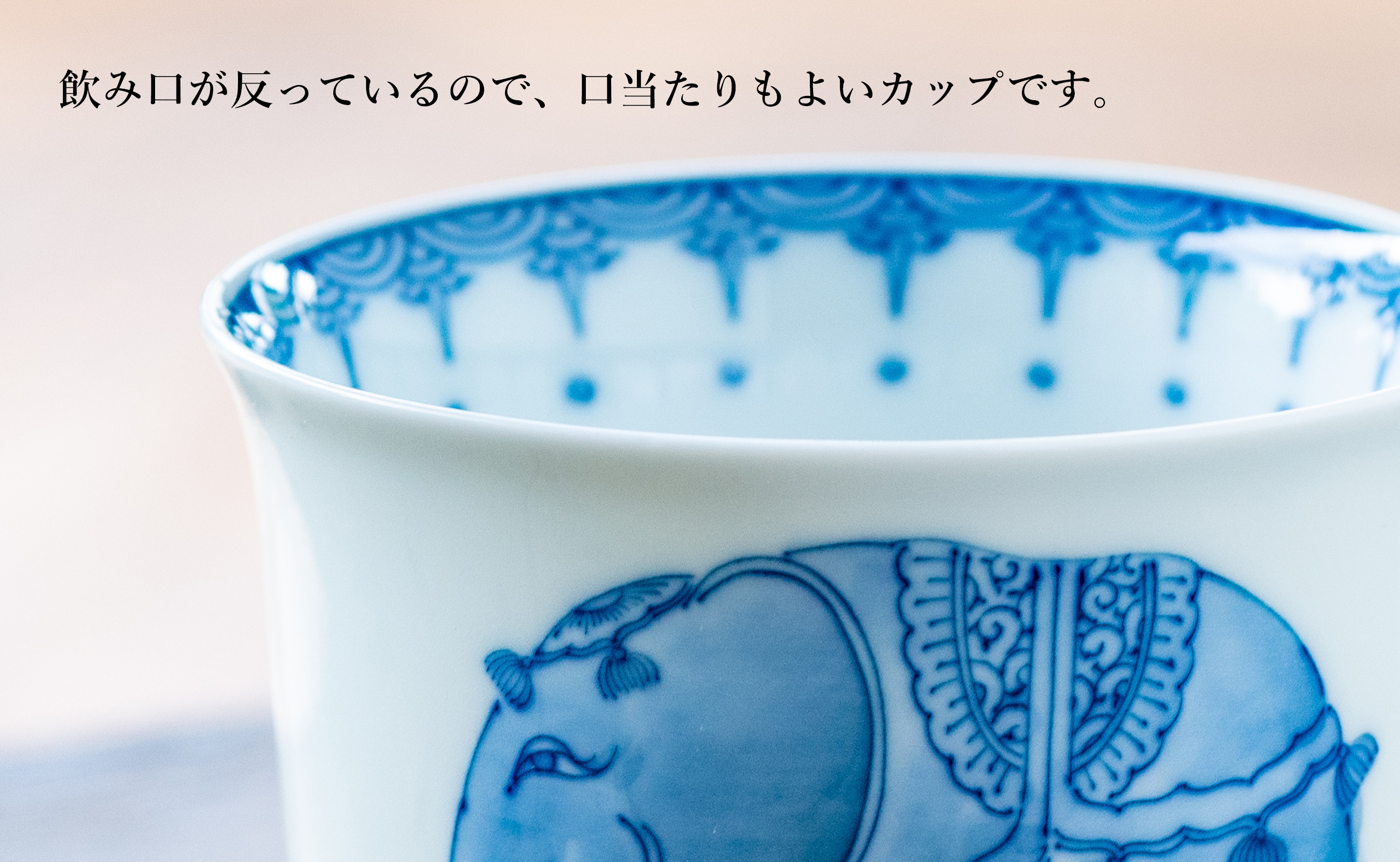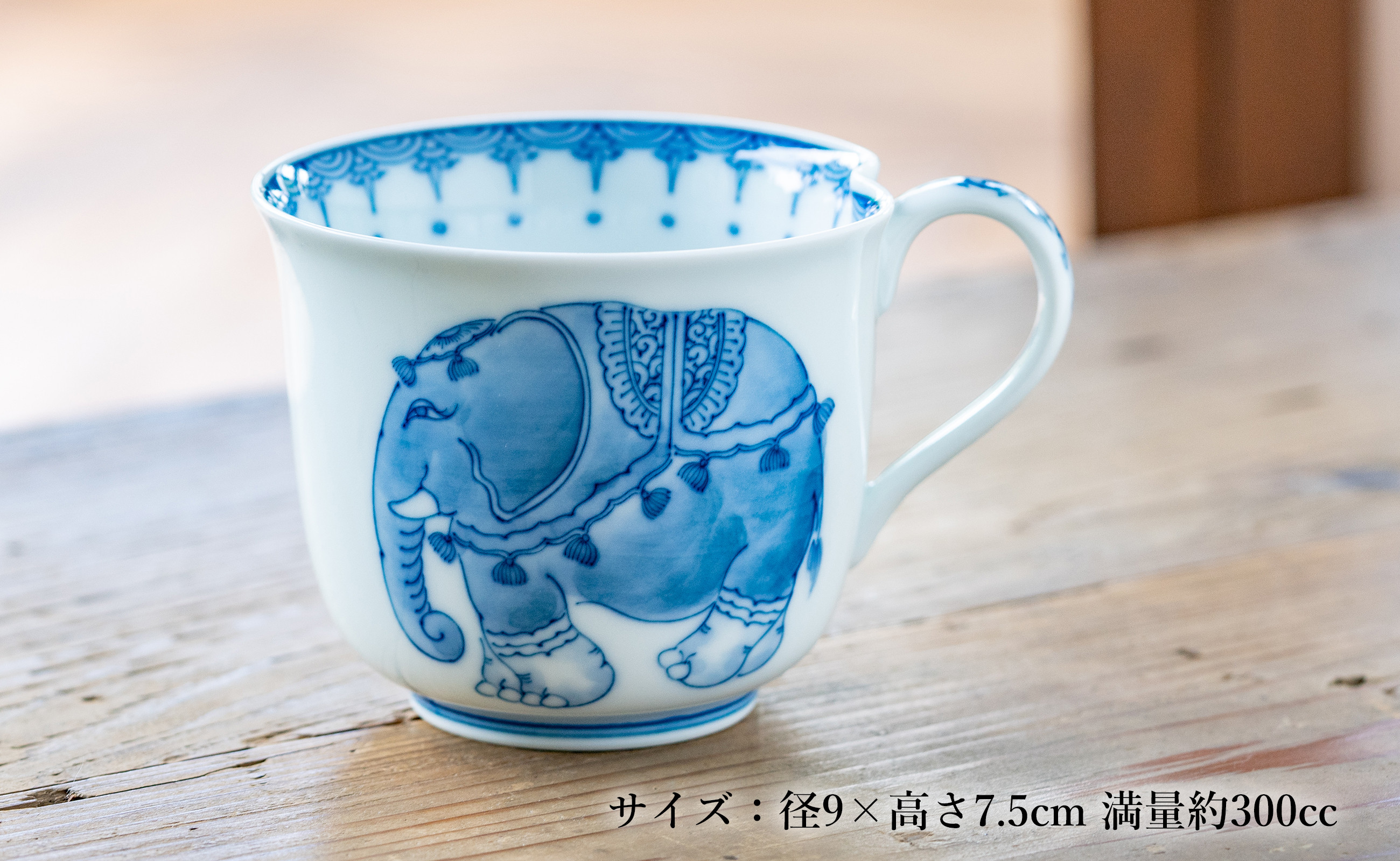 朝から夜まで1日のおともにかわいらしく上品な絵柄のマグカップ G497p 〈平戸松山窯〉象 一方押マグカップ 1個 手描き 染付 食器 コップ コーヒーカップ