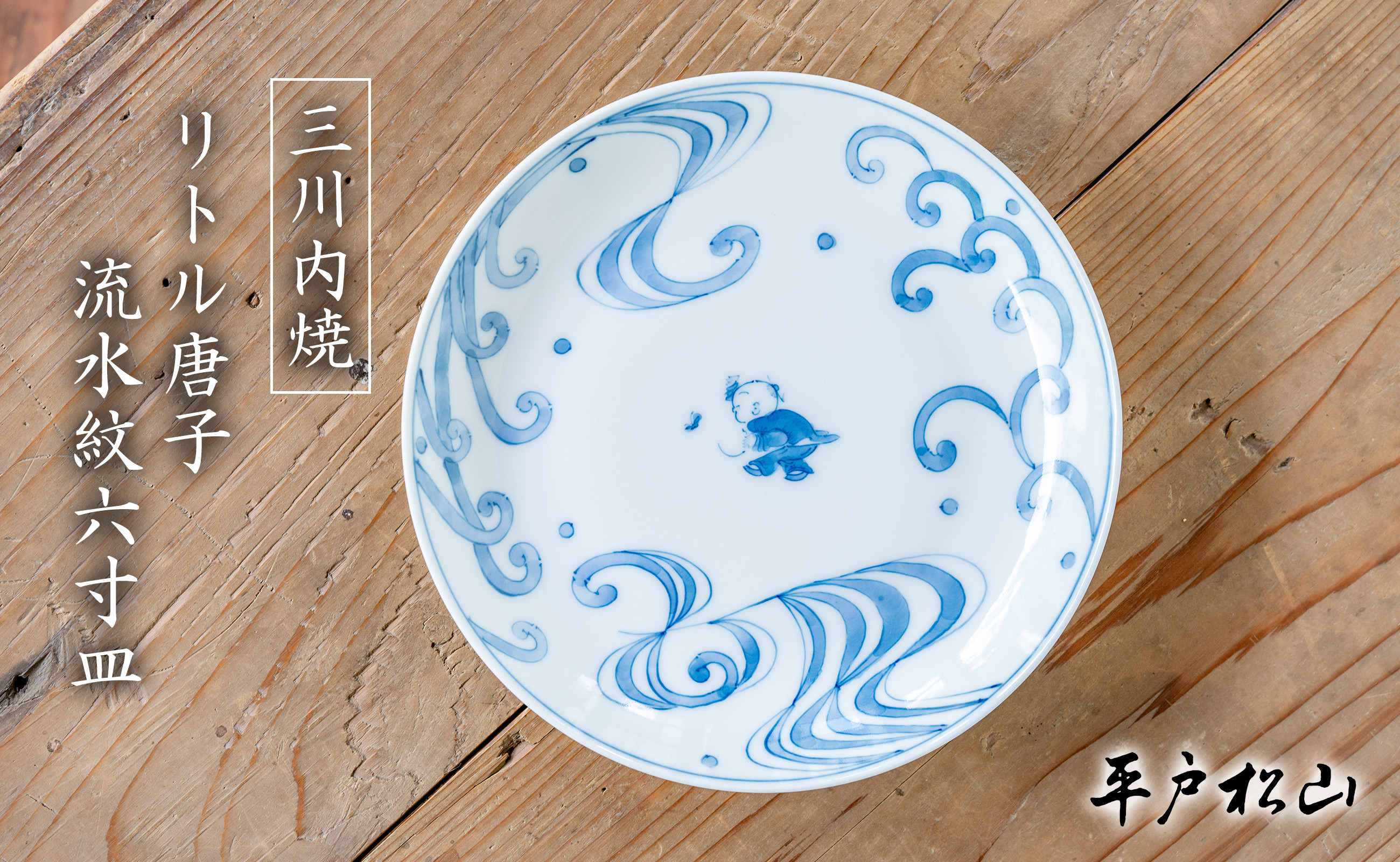 美しい「余白と文様」が料理を彩る取皿・ケーキ皿など食卓で活躍 G499p 〈平戸松山窯〉リトル唐子 流水紋六寸皿 1枚 手描き 染付 食器 皿 ケーキ皿 パン皿 盛り皿