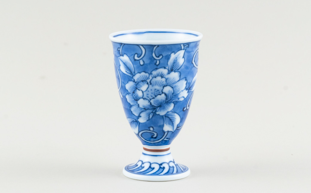染付が鮮やかなワイングラスです G509〈啓祥窯〉牡丹絵ワイングラス