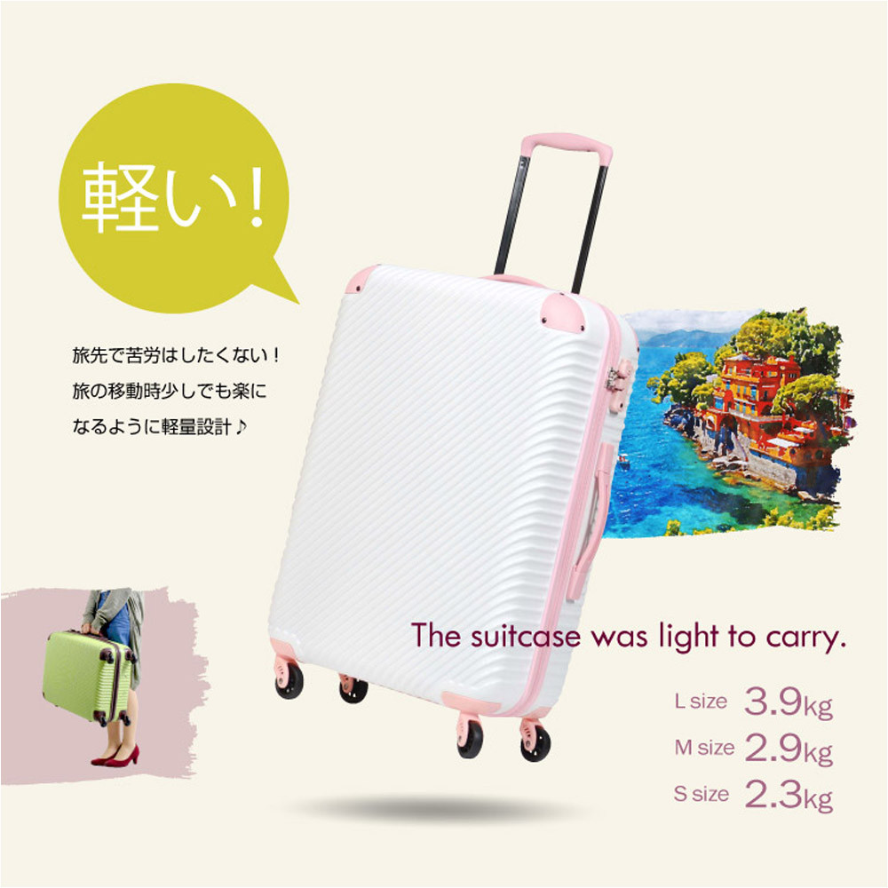 軽量タイプ、ファスナー開閉式、ボディは傷が目立ちにくいマット加工、奥行が細いオシャレでキュートなデザインスーツケース、海外でも安心のTSAロック搭載、内装は仕切り板×1、クロスベルト×1、メッシュポケット付き。