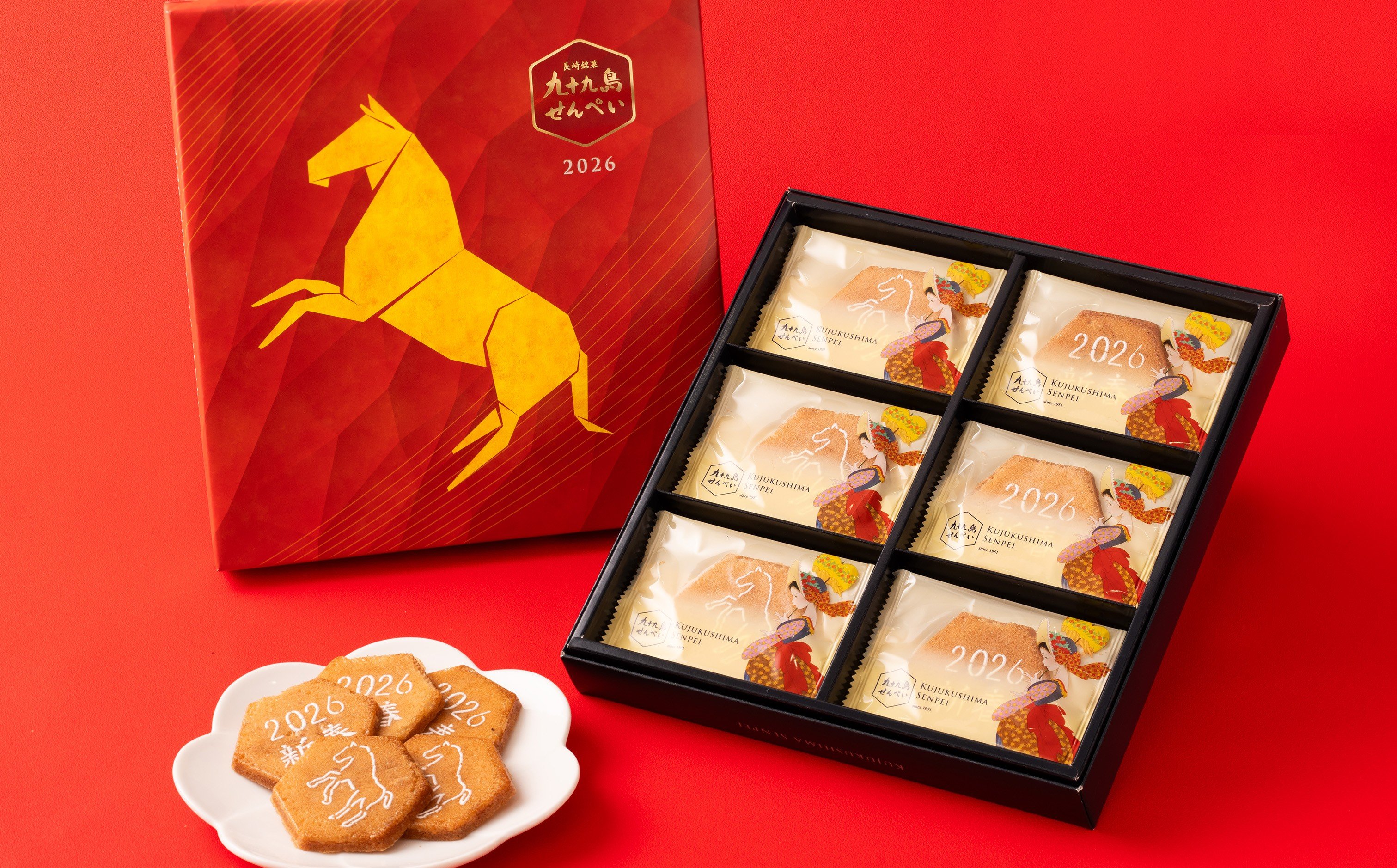 2026年の干支【午】のイラスト入り。パリッとした独特の食感と、ピーナッツの香ばしさでいつも変わらぬ美味しさ。
