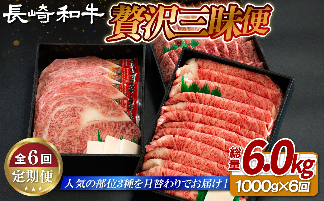 長崎和牛自慢の美味を月1回計6回お届け B420 《定期便》長崎和牛月替わりバラエティー【6回お届け】