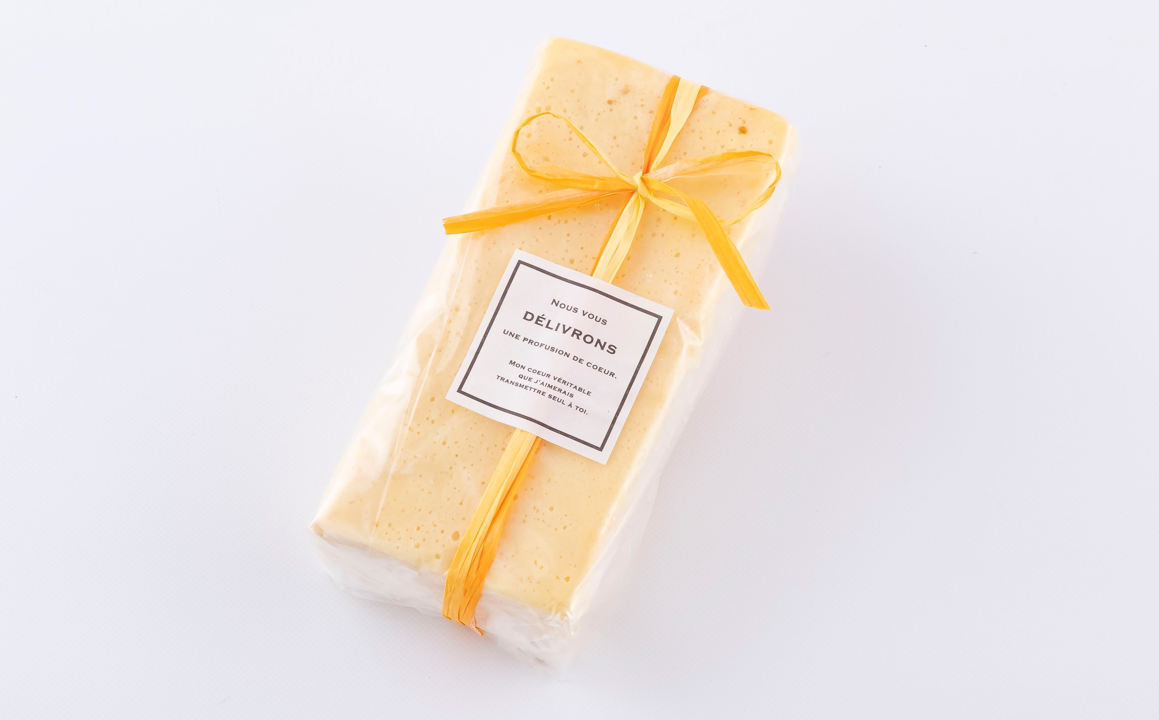 ホワイトチョコを使用することで、チーズの独特の香りを甘酒とともに包み込み、低温でじっくり湯煎焼きしたこだわりの逸品です。