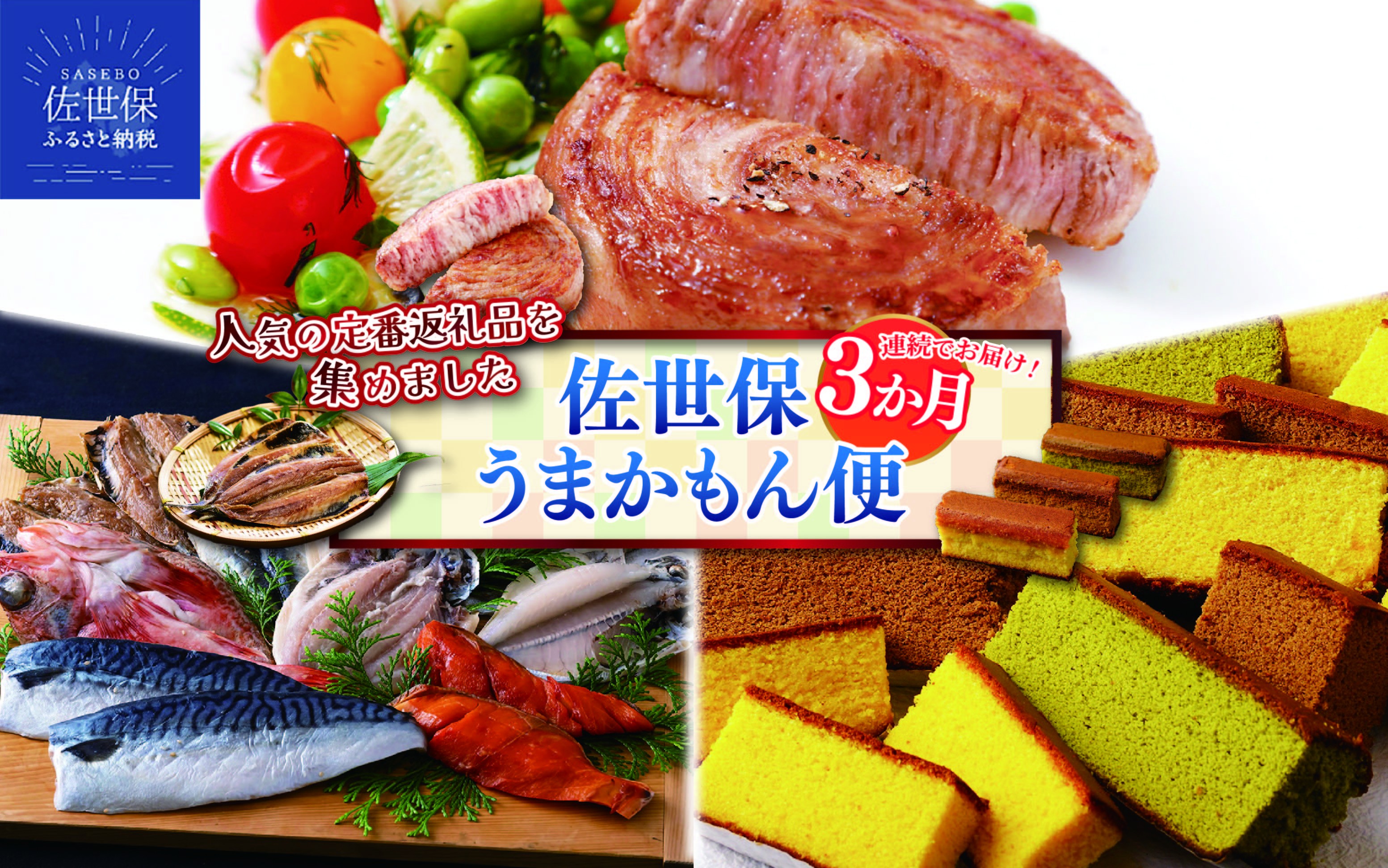 お申込みは一度だけ 毎月1回(合計3回)人気返礼品が届く E490 《定期便》佐世保のうまかもん便(3回お届け)干物 カステラ 黒豚 毎月