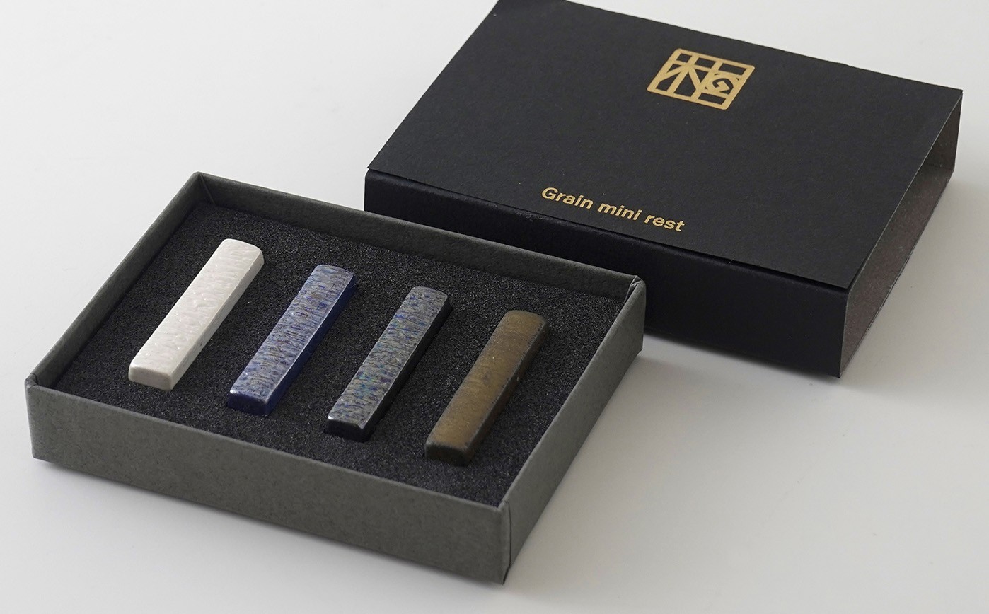 洗練されたテーブルにさりげなく寄り添う輝き。箸置き4色がシーンを彩る G622 グレインミニレスト(箸置き4色入り)