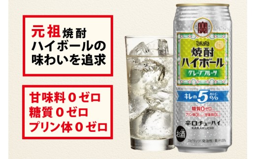 糖質ゼロで辛口の味わいはそのまま!度数低めの5%タイプ! BG133 タカラ 焼酎ハイボール 5%グレープフルーツ 500ml×24本 [ タカラ 宝 寶 Takara 焼酎 酎ハイ チューハイ ハイボール グレフル 人気 おすすめ ギフト プレゼント ご自宅用 日常使い 普段使い 送料無料 健康志向 プリン体ゼロ 糖質ゼロ 甘味料ゼロ プリン体0 糖質0 甘味料0 みつい 長崎県 島原市 ]