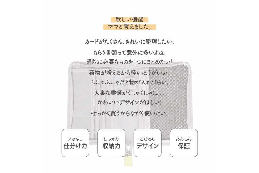 マルチケース(ファスナータイプ)は、母子手帳ケース、お薬手帳ケース、通帳ケース、年金手帳ケース、パスポートケース、カードケース、書類ケース、バッグなど様々な用途でお使いいただけます。
