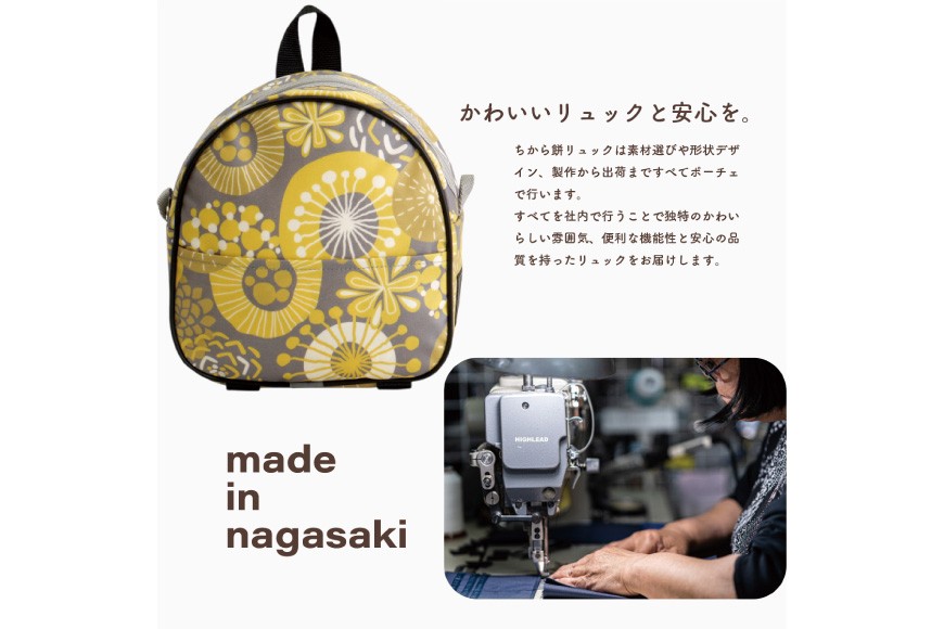 ポーチェの『ベビーリュック』は、普段のお出かけはもちろん、餅踏みの際に一升餅を入れて背負えるリュックです。
