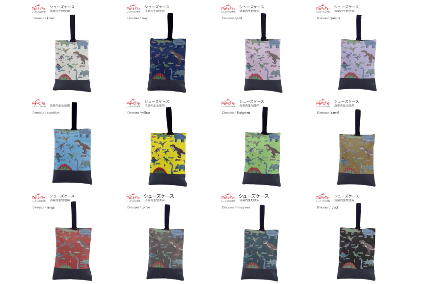 ポーチェの『シューズケース ダイナソー』は、”宇宙を目指したアルテミスロケットが恐竜の星に降り立った”そんな神話をイメージしたデザインです。