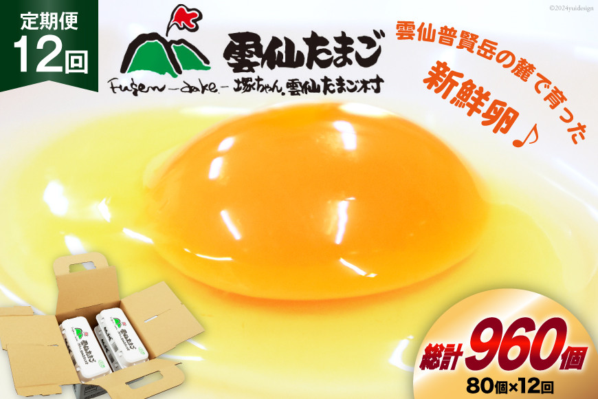 BI036 12回 定期便 雲仙たまごLサイズ 80個 (10個入り×8パック…
