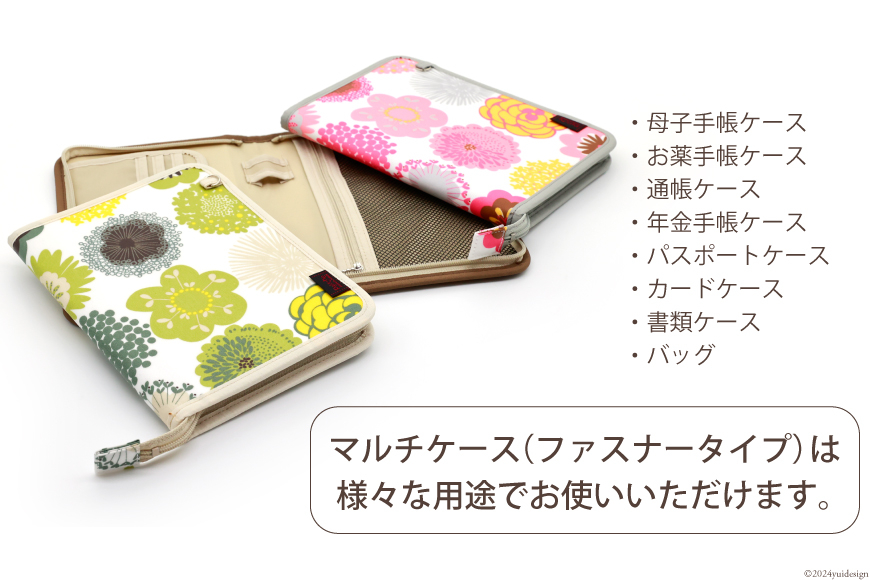 マルチケース(ファスナータイプ)は、母子手帳ケース、お薬手帳ケース、通帳ケース、年金手帳ケース、パスポートケース、カードケース、書類ケース、バッグなど様々な用途でお使いいただけます。