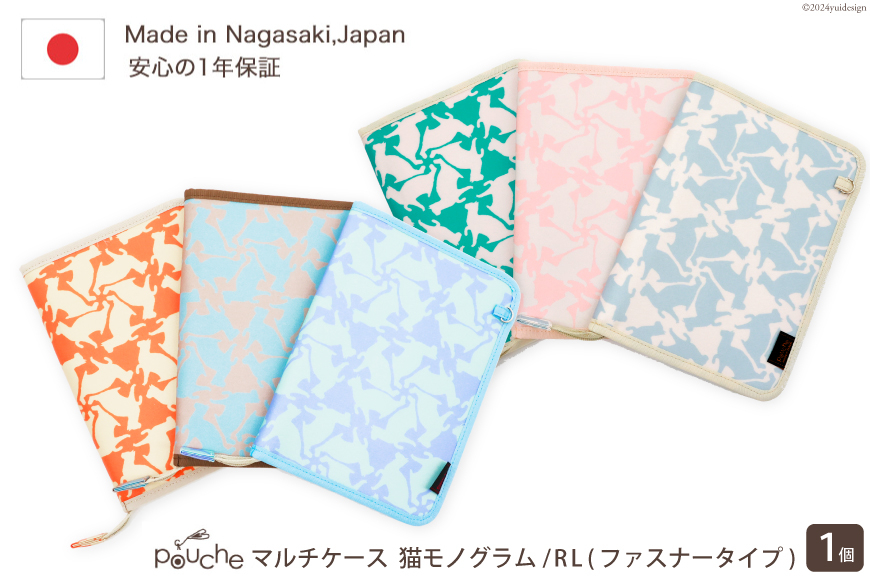 使い方いろいろ!ガバっと見開き!整理が楽ちん! AI163 マルチケース(ファスナータイプ)猫モノグラム Rモデル 1個 【 母子手帳ケース 2人分 猫 動物 アニマル かわいい おしゃれ 軽量 Pouche ポーチェ 長崎県 島原市 】