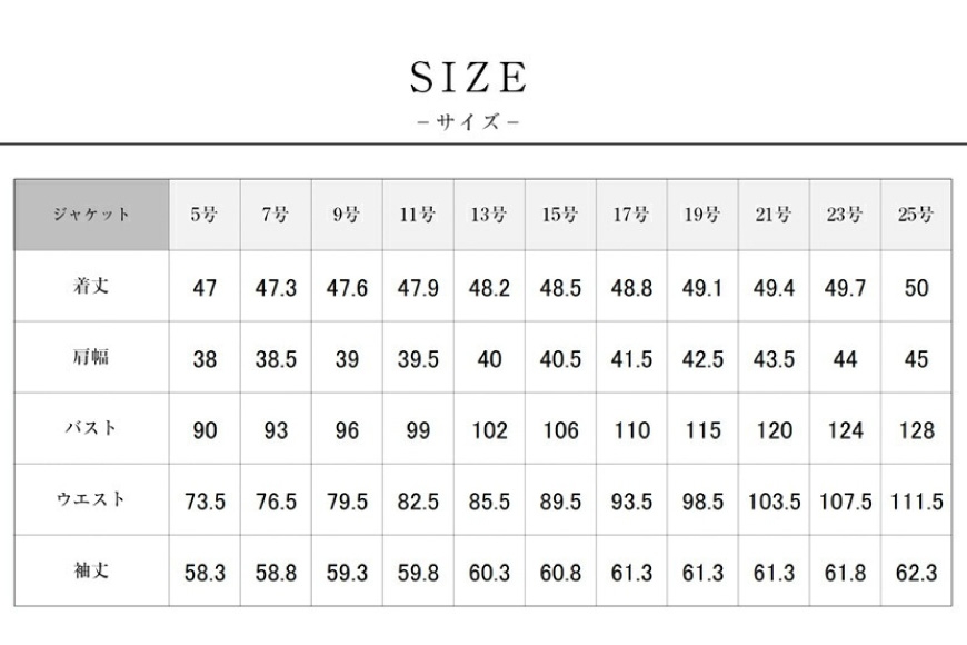 | 容量 | ブラックフォーマルアンサンブル 5号サイズ/7号サイズ/9号サイズ/11号サイズ/13号サイズ/15号サイズ/17号サイズ/19号サイズ/21号サイズ/23号サイズ/25号サイズ から1枚選択してください ■原材料名 ジャケット・ワンピース共通:表地・裏地 ポリエステル100% |