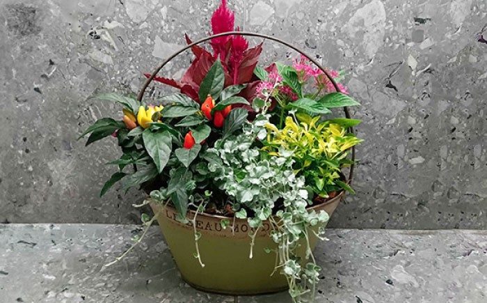 季節の花といろんな種類の鉢が楽しめる寄せ植えプランターの定期便です!