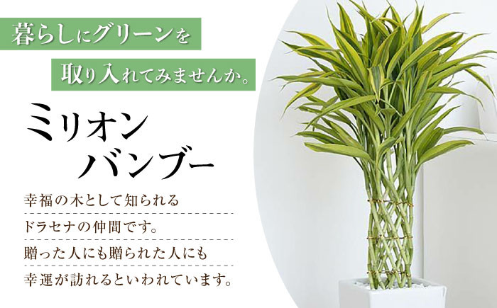 万年竹(ミリオンバンブー)はドラセナ・サンデリアーナという品種の観葉植物で、贈った人にも贈られた人にも幸運が訪れるといわれています。