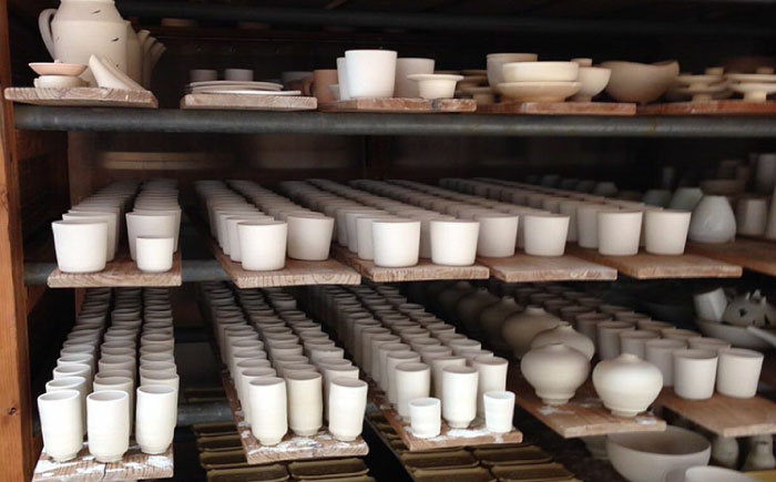 白く美しい天草陶石を原料に1点1点ロクロ技術で成型しています。白い素地は色釉を引き立たててくれます。