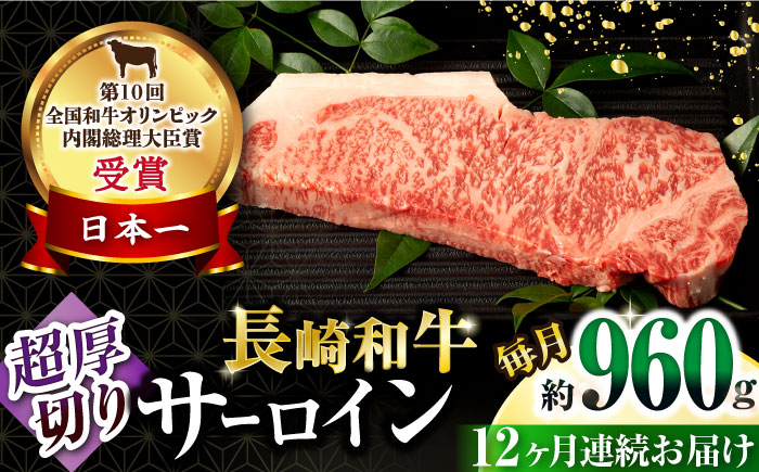【内閣総理大臣賞】A4ランク以上のサーロインステーキ 【12回定期便】長崎和牛 サーロインステーキ 約320g×3枚 / 牛肉 サーロインステーキ さーろいんすてーき サーロイン さーろいん ステーキ すてーき 小分け 牛肉定期便 / 大村市 / おおむら夢ファームシュシュ[ACAA257]