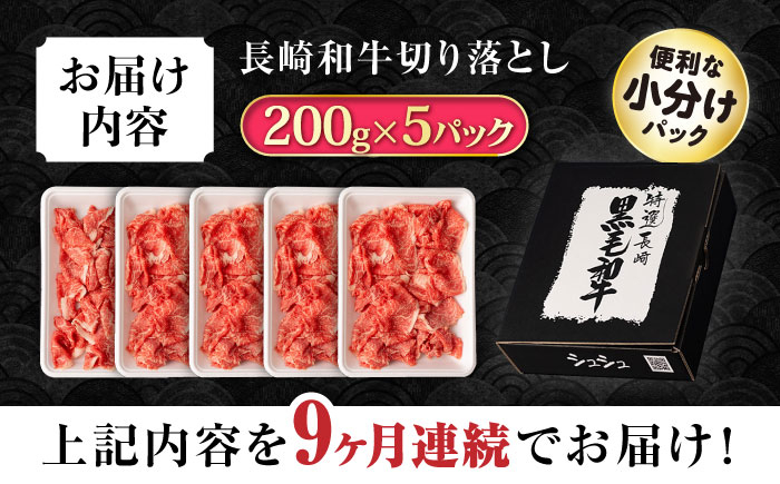 【内閣総理大臣賞】A4ランク以上の長崎和牛切り落とし 【9回定期便】長崎和牛 切り落とし 1kg/月(総計9kg) / 牛肉 切り落とし 切りおとし きりおとし すき焼き 小分け / 大村市 / おおむら夢ファームシュシュ [ACAA232]