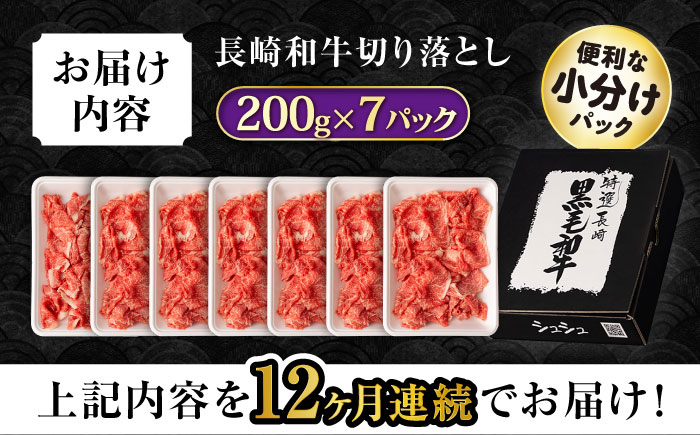 【内閣総理大臣賞】A4ランク以上の長崎和牛切り落とし 【12回定期便】長崎和牛 切り落とし 1.4kg/月(総計16.8kg) / 牛肉 切り落とし 切りおとし きりおとし すき焼き 小分け / 大村市 / おおむら夢ファームシュシュ [ACAA241]