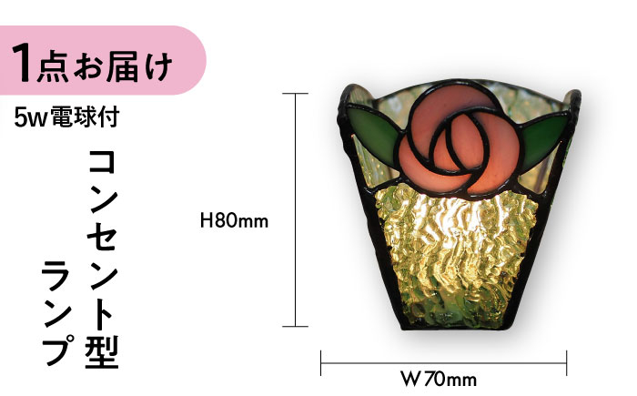 暗い中も安心!足元を照らす「おやすみランプ」 おやすみ ランプ (ばら) 横70×縦80mm ステンドグラス ピンク / 照明 ライト ランプ ステンドグラス 大村市 / ステンドグラス工房ウォークオン [ACZT009]