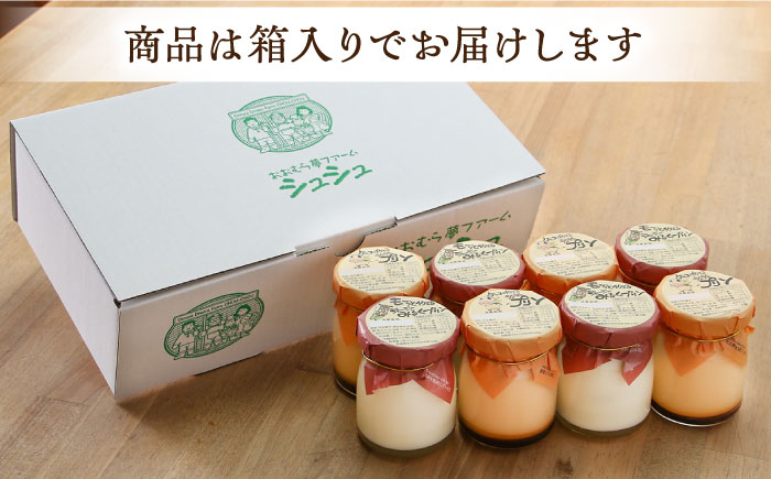 おおむら夢ファームシュシュ洋菓子工房で大人気の地元の牛乳と卵を使用した風味豊かでなめらかなケッコ~イケてるシュシュプリンと、地元のジャージー牛乳と卵を使用した純白でヘルシーなモ~っとイケてるジャージーみるくプリンのセットです。