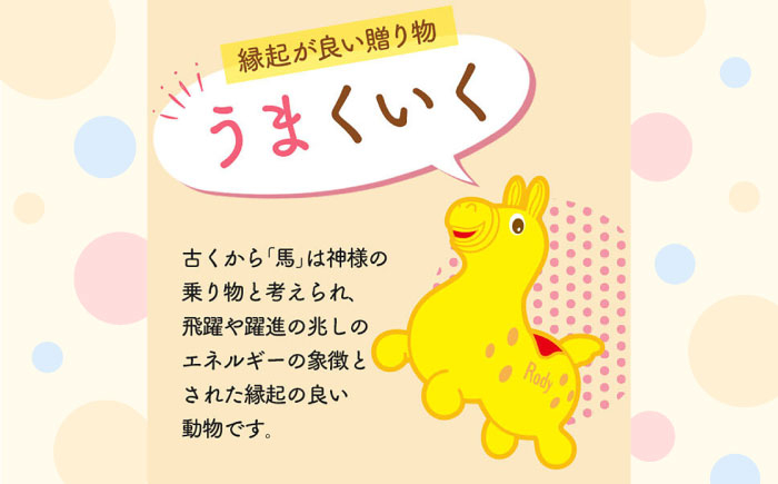 黄色は昔から縁起がいいと言われていること、馬は昔から飛躍や躍進の兆しとして縁起のよい動物と言われています。