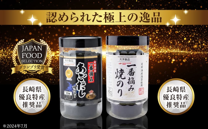 有明海産一番摘み海苔を使用した焼のり、味付のりのセットです 有明海産一番摘みNORIセット(卓上焼のり8切40枚×2本、卓上あごだし味付のり10切50枚×4本)/海苔 卓上海苔 詰め合わせ/ 大村市/大洋食品 [ACCG001]