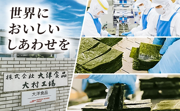 マルハニチログループの一員として大村市に工場を構え、「世界においしいしあわせを」というグループスローガンを掲げ海苔製品を日々製造・販売しています。