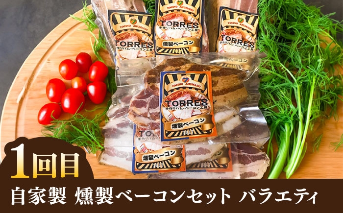 バラエティ豊かな定期便です! 【全5回定期便】 トレス 満喫セット (ベーコン・ハム/フランクフルト/スモークチーズ/ローストチキン) /バラエティ定期便 月替わり 頒布会/ 大村市/Torres手作りハムベーコン工房 [ACYW010]