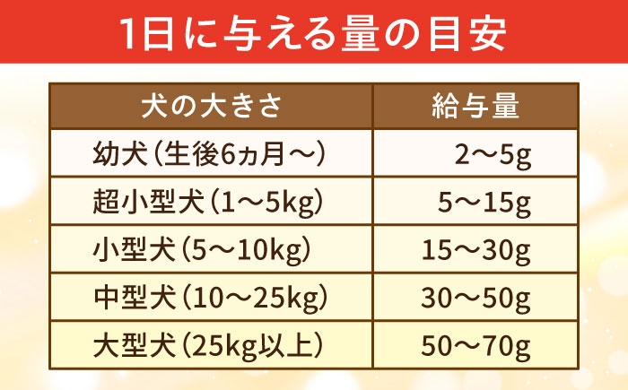 ・給与量はあくまでも目安です。犬種・年齢・性質・運動量・季節などにより異なります。