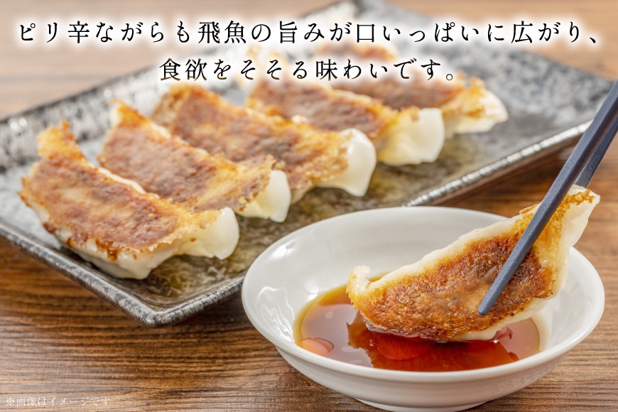 ピリ辛ながらも飛魚の旨みが口いっぱいに広がり、食欲をそそる味わい。おすすめは、底に沈んだ香辛料ごとすくって使うこと! 一層風味豊かに楽しめます。