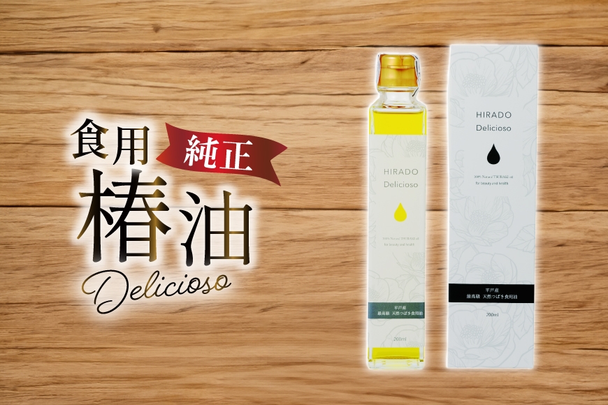そして食用の《デリシオーゾ》は、オレイン酸86%以上とオリーブオイルを超える含有量を誇る純正椿油。無農薬で育てた平戸産ツバキの実から搾り、クセがなく加熱調理にも生食にもぴったり。