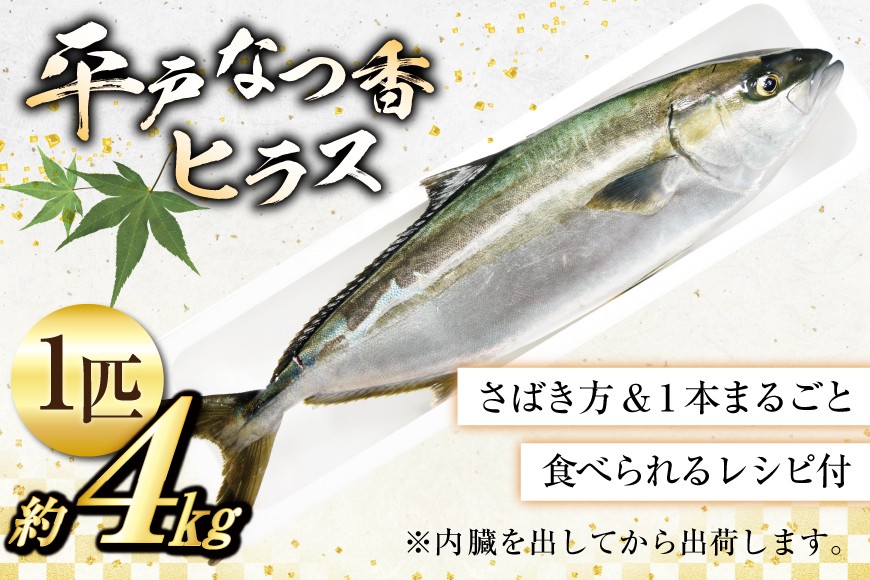TVで話題!平戸のフルーツで育ったヒラマサ 刺身 ヒラマサ 平戸なつ香 ヒラス 丸々 1匹 約4kg [坂野水産 長崎県 平戸市 hr42bgy420516] 魚介 さかな お刺身 刺身用 さしみ 冷蔵 下処理済 レシピ付き おかず フルーツ魚 夏香 鮮魚 海鮮 鍋 海鮮丼 生食 生食用