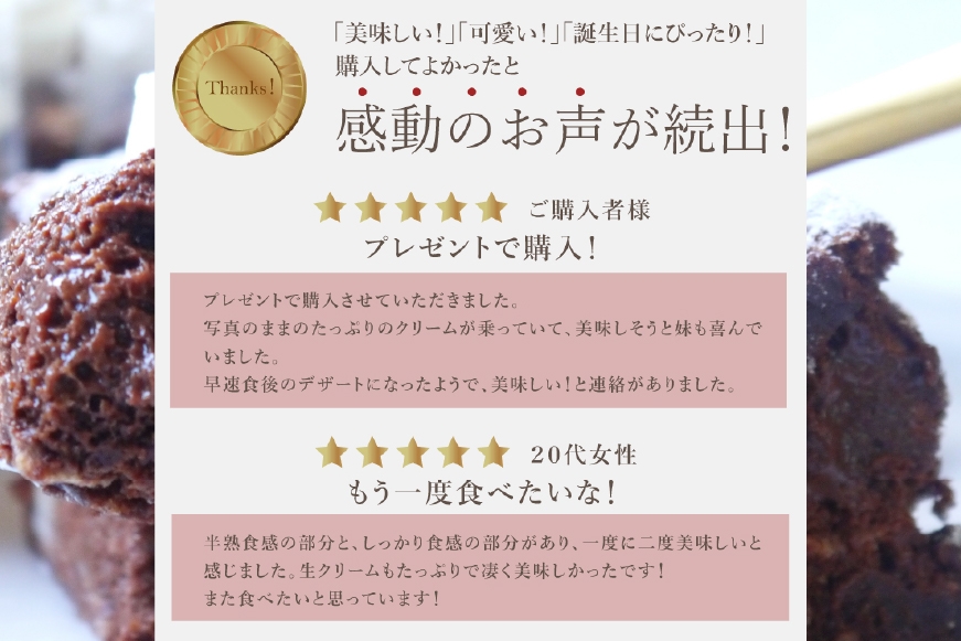 ビター&スイートのクーベルチュールチョコレートを合わせ、長崎県産の希少卵をふんだんに使用し、オランダ産ココアを贅沢に使った、他では味わえないとろける半熟ガトーショコラ。