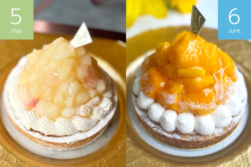 1月のミックスフルーツチーズタルトや2月の5層チョコタルト、夏のジェラートセット、クリスマス限定のチョコバナナタルトなど、旬の素材を活かした多彩なメニューを毎月お届け。食べるたびに新しい感動と発見がある、贅沢なスイーツ体験を。