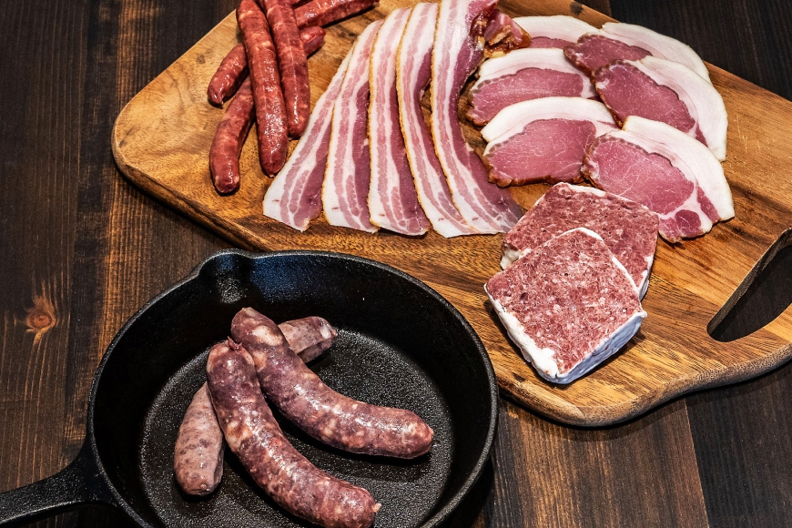 | 容量 | ・猪肉100%ソーセージ×1 ・猪肉100%スモークソーセージ×1 ・ロースハムスライス×1 ・ベーコンスライス×1 ・パテ・ド・カンパーニュ×2 |
