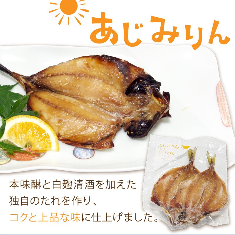 また、あじみりんは、本味醂と白麹清酒を加えた独自のたれを作り、コクと上品な味の”みりん干し”に仕上げました。