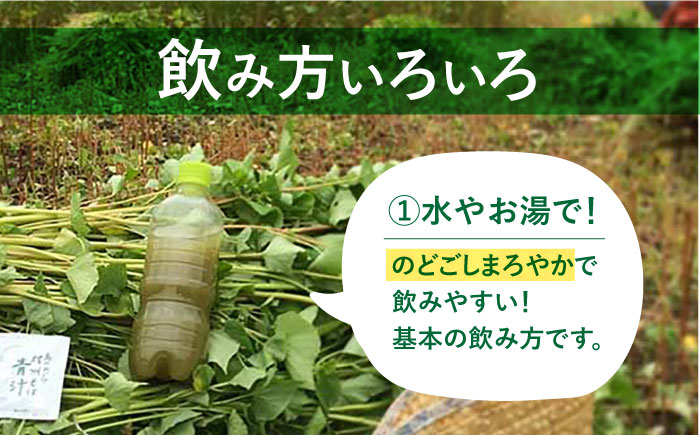 対馬在来のそば「対州そば」のそばの茎葉を抹茶のように微粉砕した青汁です。