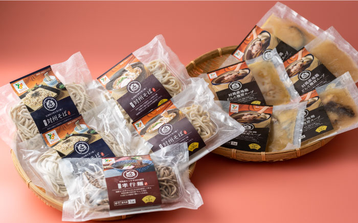 香り高いそば、対馬産地鶏、原木椎茸の贅沢なスープのセットです 【全12回定期便】【対馬の味】対州 そば / 孝行麺 / 地鶏 椎茸 スープ セット 詰め合わせ《対馬市》【「匠」運営協議会】九州 長崎 麺 ご当地 [WBL006]