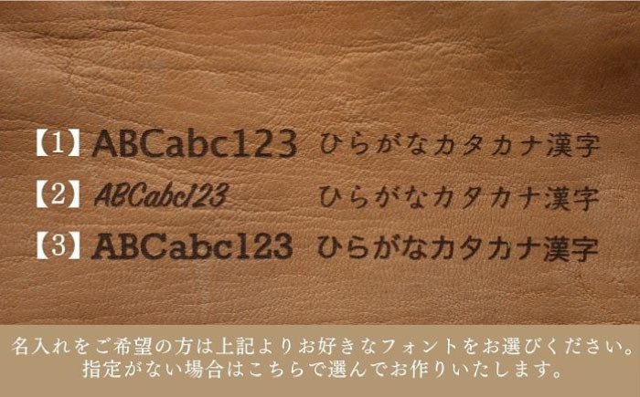 | 容量 | ネームホルダー(長さ調整可能/免許証がぴったり入るサイズです) <色> 全9色【[A]ヌメ(シカ)[B]キイロ(シカ)[C]オレンジ(シカ)[D]ヌメ(イノシシ)[E]ウメ(イノシシ)[F]キャメル(イノシシ)[G]ターコイズ(イノシシ)[H]アオ(イノシシ)[I]クロ(イノシシ)】の中からご希望の色をお選びいただき備考欄にご記載ください。 ※「H.アオ(イノシシ)」は欠品中のため選択不可 ※色の指定がない場合はこちらで選んでお作りいたします。お忘れないようご注意ください。 <名入れ> 文字の印字をご希望される方は印字されたい文字を備考欄へご記入ください。 印字は、ひらがな・カタカナ・漢字・アルファベット・数字・記号(.!_/`()[]+-=$#&@~)が対応可能です。 文字の印字位置は画像に記載の場所になります。 ※名入れはレーザーの焼き付けによる加工になります。 ※濃い革の色をお選びの場合、印字が見えにくい場合がございますのでご了承ください。 ※備考欄に印字したい文字のご記載がない場合は、無地として発送させていただきます。 ※お礼品により異なりますが、10〜20字程度の印字が可能です。文字数が多い場合は改行をさせていただく場合がございます。 <フォント> 印字したい文字のご希望のフォントを画像の【1】、【2】、【3】よりお選びください。 ☆【備考欄】の記載例 色:A 名入れ文字:daidai.tsushima フォント:3 【原料原産地】 対馬産 【加工地】 長崎県対馬市 ※離島のため、天候や船の運行状況により、お届け日が前後する場合がございます。 |