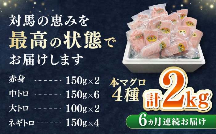 対馬のマグロでマグロパーティ! 【全6回定期便】 対馬産 本マグロ 4種 計2kg(赤身/中トロ/大トロ/ネギトロ)《対馬市》【対海】 冷凍配送 大容量 新鮮 海鮮丼 手巻き寿司 [WAH035]