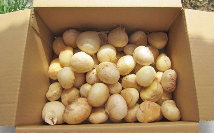 バイオダイナミック農法による無農薬栽培のジャンボニンニク。