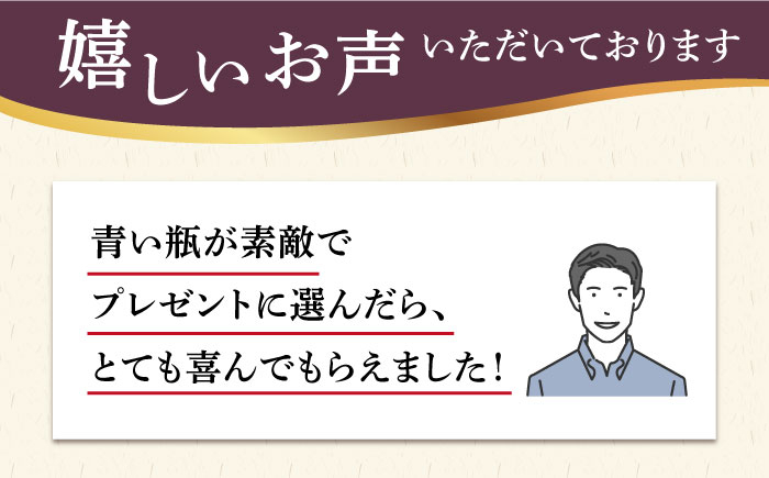 五島列島の海をイメージした鮮やかなブルーのボトルが特徴の麦焼酎『五島麦』。