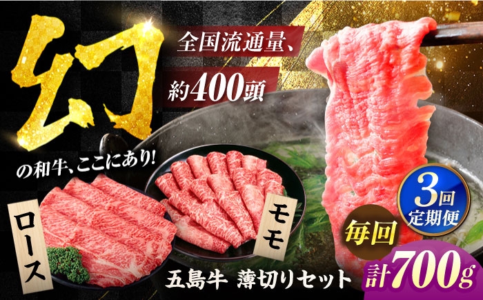 冷凍 牛肉 ブランド牛 和牛 長崎和牛 ロース モモ すき焼き しゃぶしゃぶ 【3回定期便】五島牛薄切り700g(ロース300g/モモ400g) 五島市/ごとう農業協同組合[PAF006]