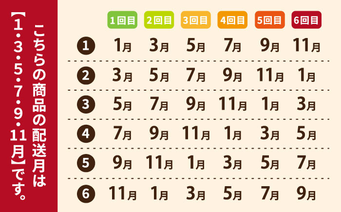 ・こちらの商品の配送月は【1/3/5/7/9/11月】になります。 ・受取日のご指定はできません。(お時間の指定は可能です) ・初回配送は申込日の次の配送月1日~15日頃となります。 ・在庫の状況次第ではお待たせする場合がございます。 ・申込が多くなった場合は、配送に遅れが生じる場合がございます。 |