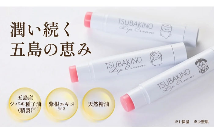 五島に咲く椿の恵みを、あなたのくちびるに。 【3回定期便】リップクリーム3本セット 五島市/合資会社椿乃[PAM054]