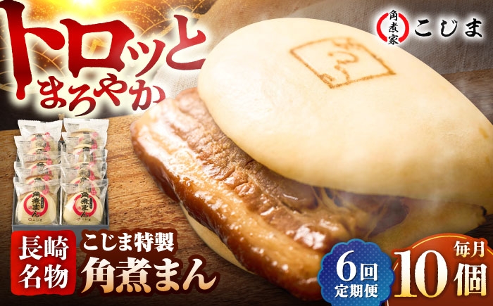 角煮 角煮饅頭 豚肉 小分け 個包装 おやつ ギフト 贈答 お土産 冷凍 長崎 【6回定期便】【こじま特製】長崎名物 角煮まん 10個入 五島市/角煮家こじま [PGX015]