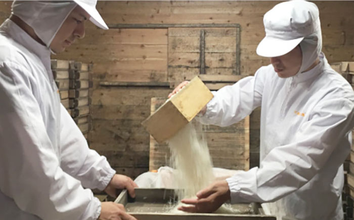 米から出来た麹が、かめの中でもろみ酒になり、静かに発酵していく中で、たくさんのアミノ酸や有機酸を生成し、味わい豊かなお酢になります。