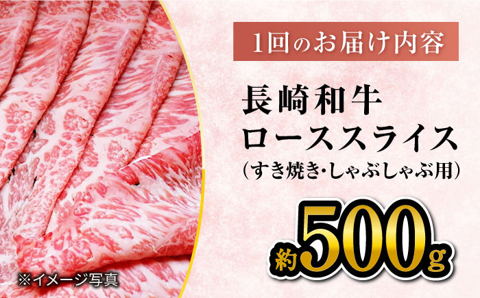 極上ロースで舌鼓♪ 【3回定期便】【訳あり】長崎和牛 ローススライス 約500g( すき焼き・しゃぶしゃぶ用 )×3回定期便<大西海ファーム> [CEK150]
