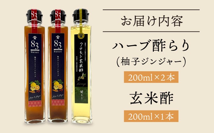 | 容量 | 83ハーブ酢らり 200ml 2本 クロモジ玄米酢 200ml 1本 |
